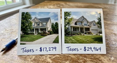 A lower-priced home with higher taxes can sometimes cost the same monthly as a higher-priced home with lower taxes.